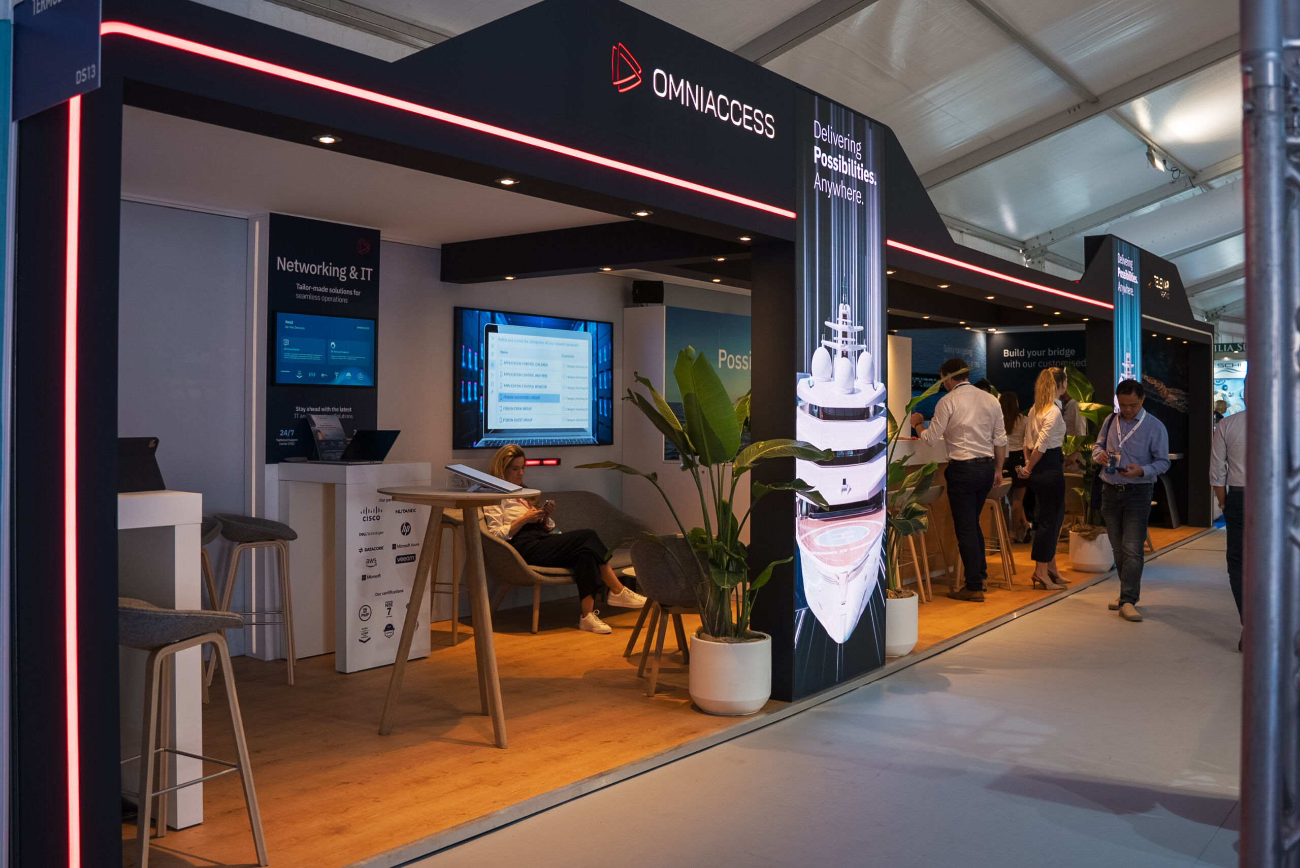 OmniAccess: Een technisch perfecte hoogglans lakafwerking voor hun presentatie-omgeving, passend bij hun innovatieve positie in de jachtsector.